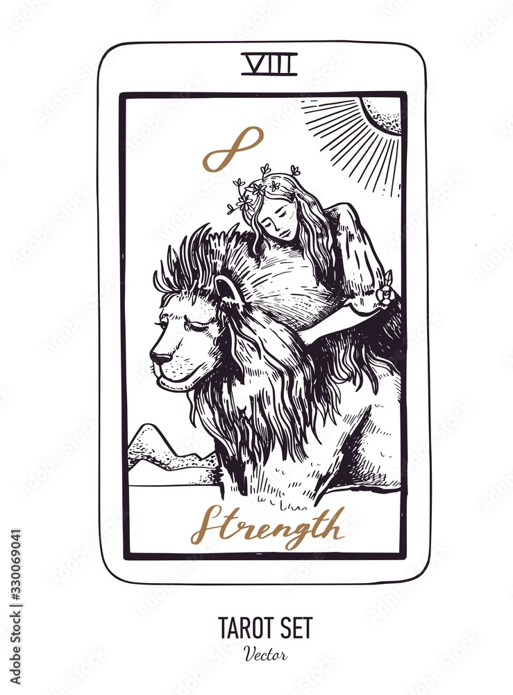 Vector Hand Drawn Tarot Card Deck Major Arcana The Strength Engraved Vintage Style Occult Spiritual And Alchemy Symbolism Stock Vector Adobe Stock